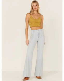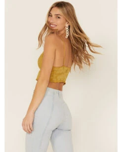 Very J Women’s Natural Ruffle Strap Sweater-Knit Crop Tank Top