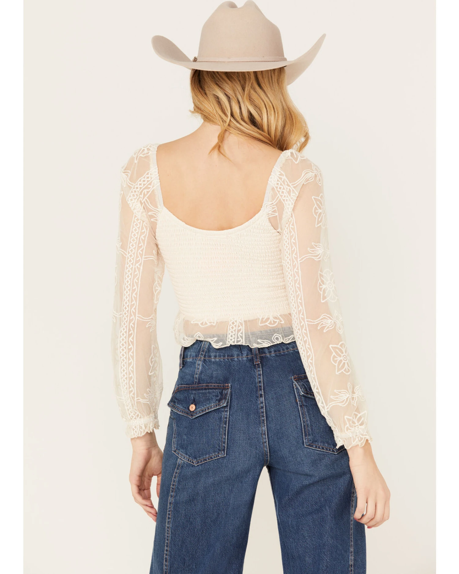 Jolt Women’s Lace Smocked Long Sleeve Top