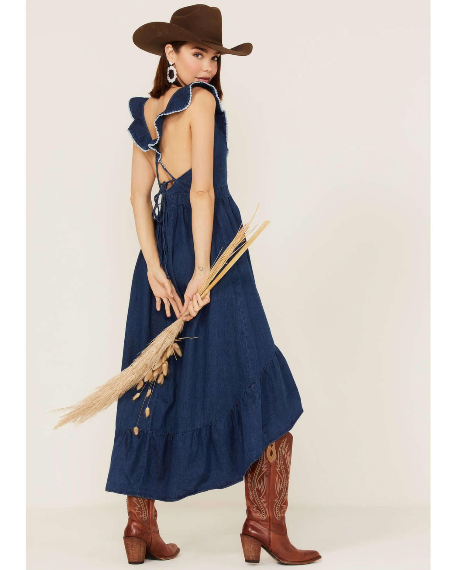 Molly Bracken Women’s Ruffle Trim Cross Back Maxi Dress