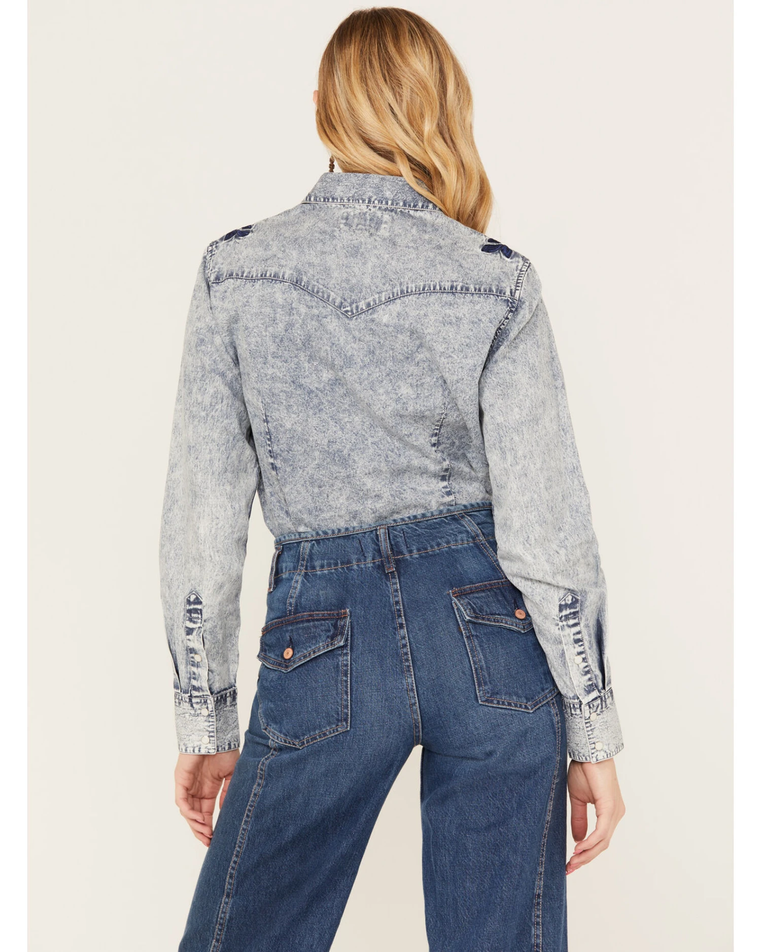 Panhandle Women’s Medium Wash Floral Long Sleeve Pearl Snap Western Shirt