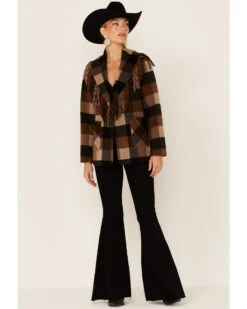 Pendleton Women’s Charcoal & Camel Fringed Wool Blend BarnĀ Coat