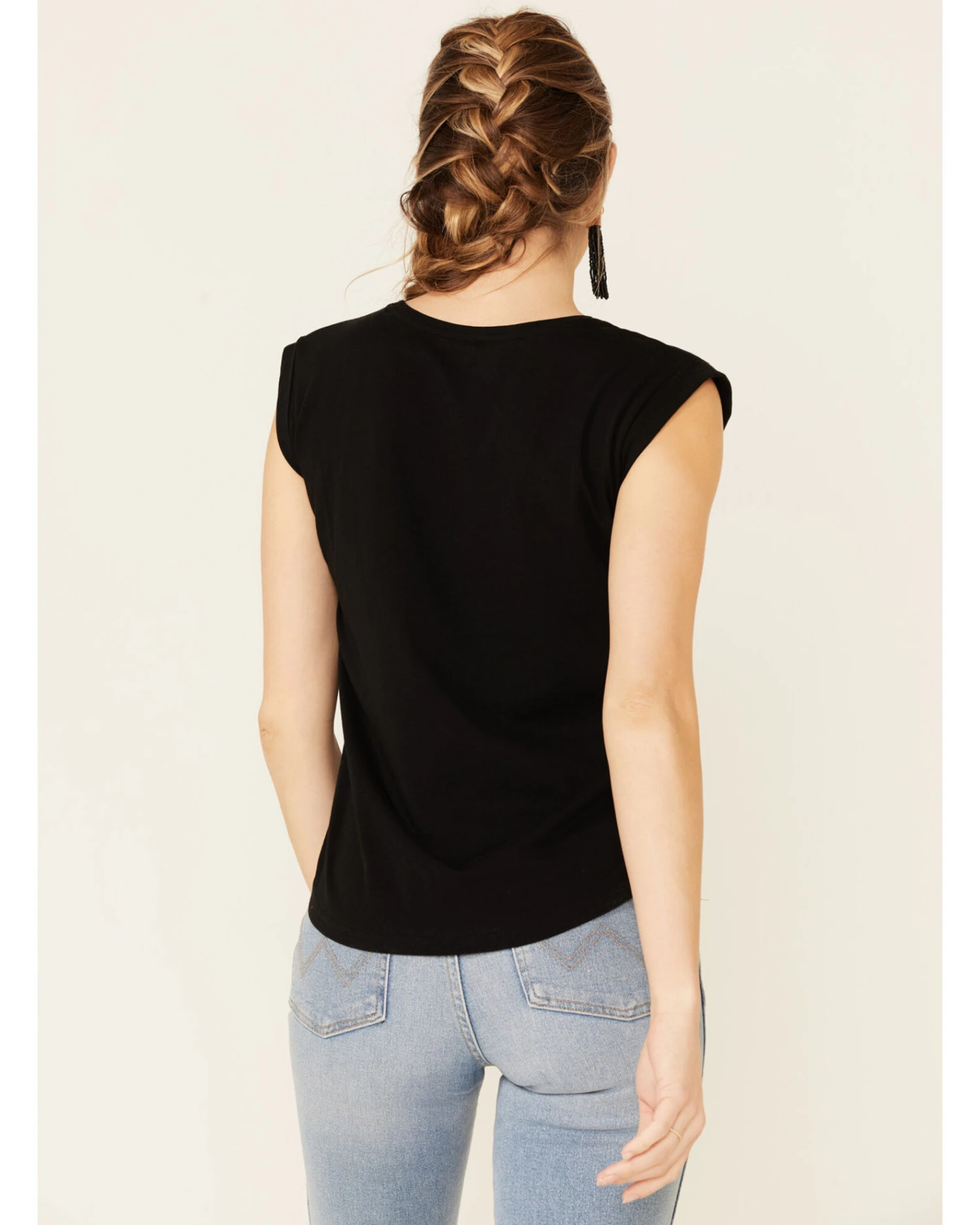 Shyanne Women’s Fringe With Benefits Graphic Muscle Tee