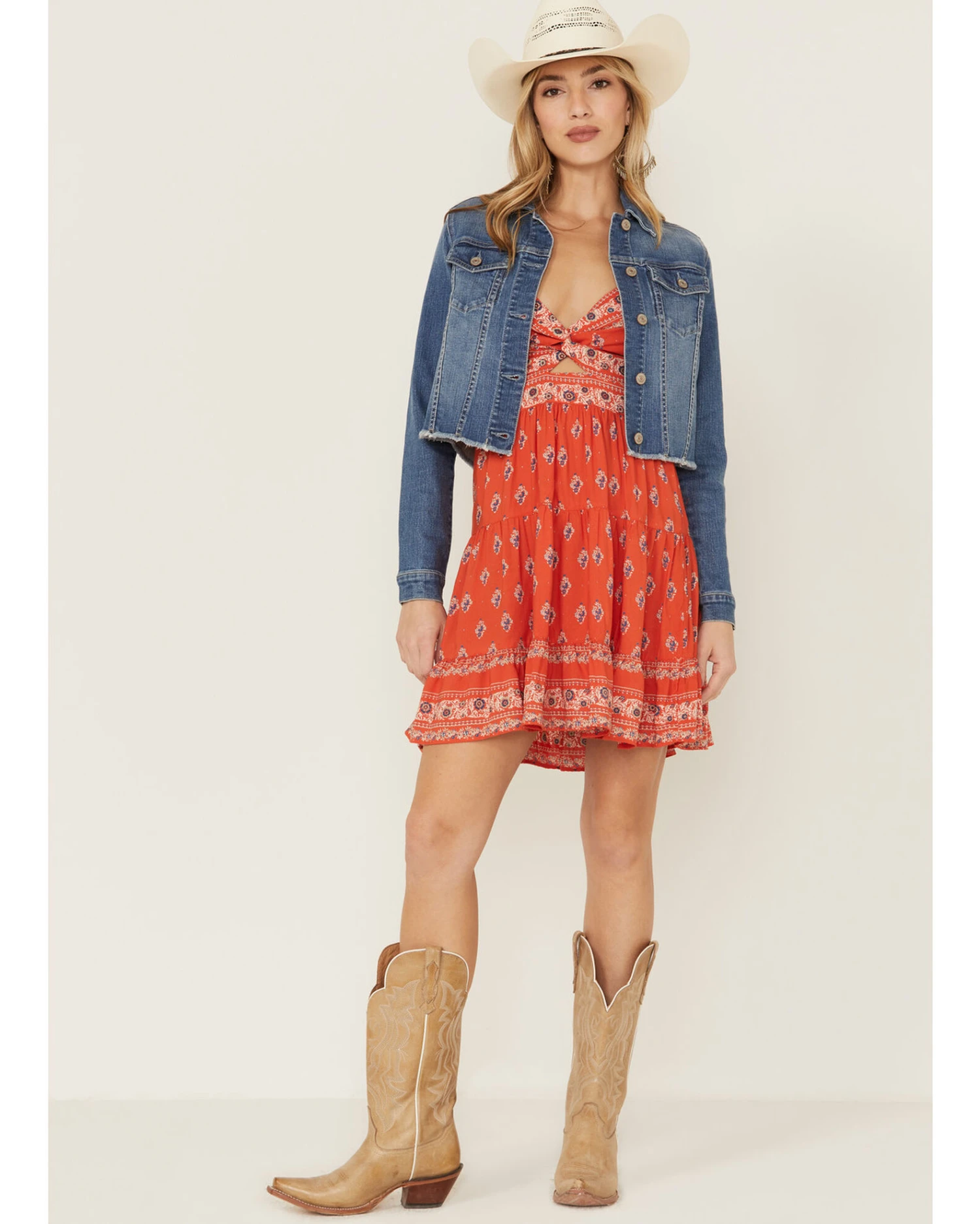 Shyanne Women’s Light Denim Cropped Fray Jacket
