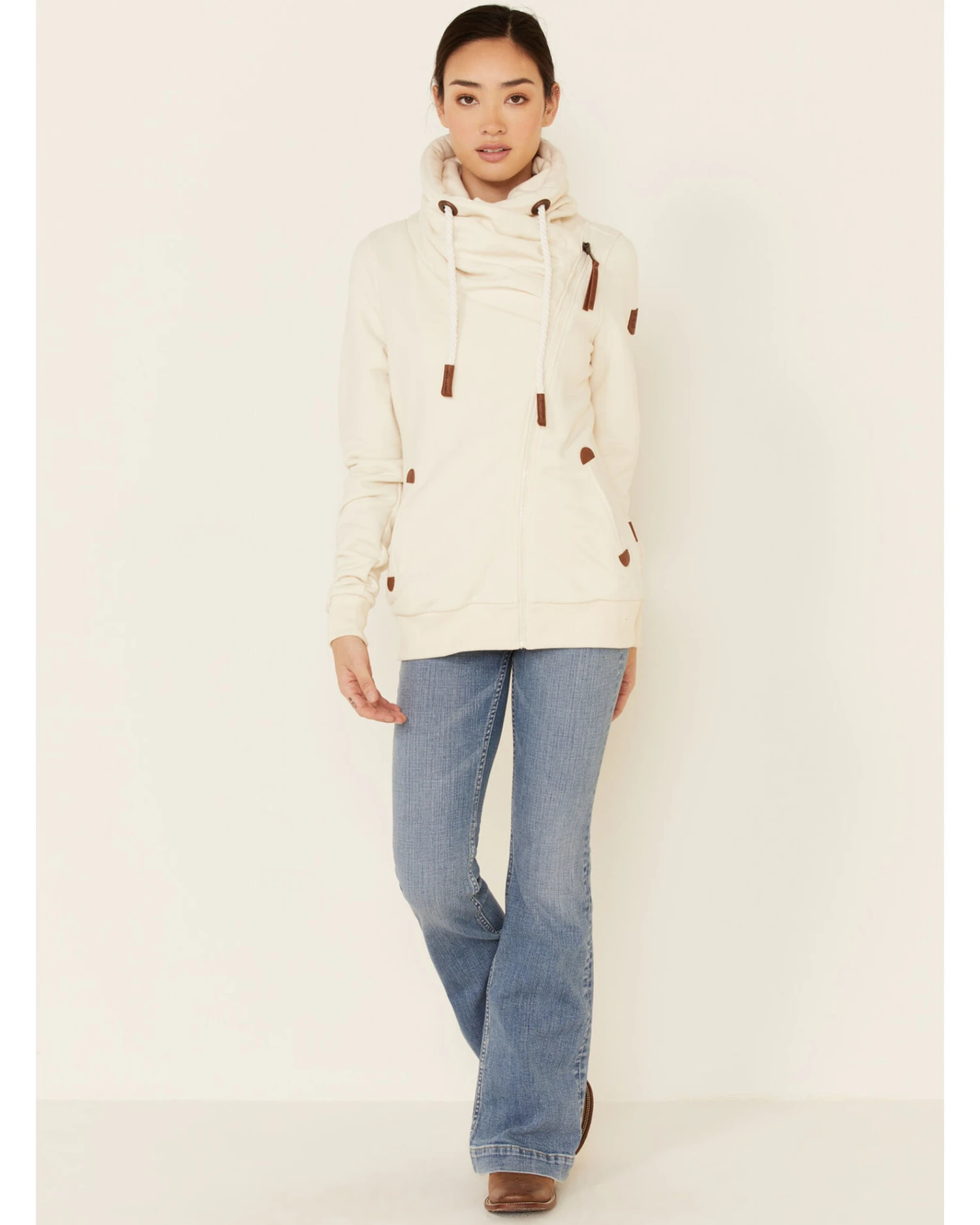 Wanakome Women’s Oatmeal Hestia Asymmetrical Zip-Front Hoodie