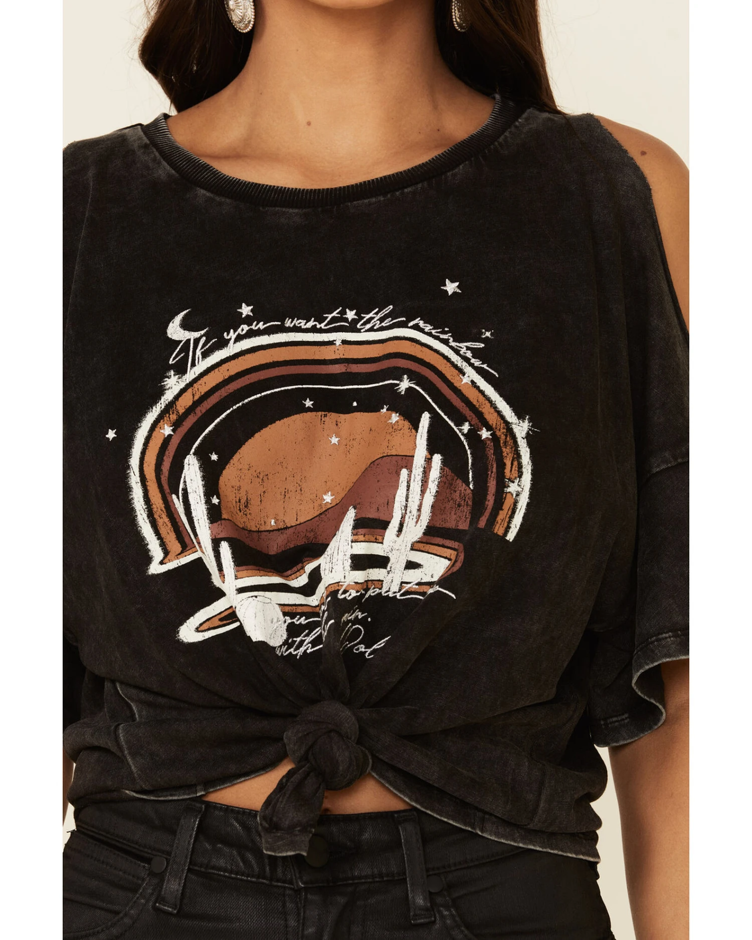 White Crow Women’s Night Rainbow Dolly Quote Cold Shoulder Top