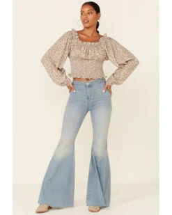 Beyond The Radar Women’s Ditsy Smocked Long Sleeve Peasant Crop Top